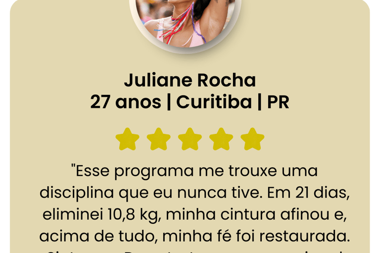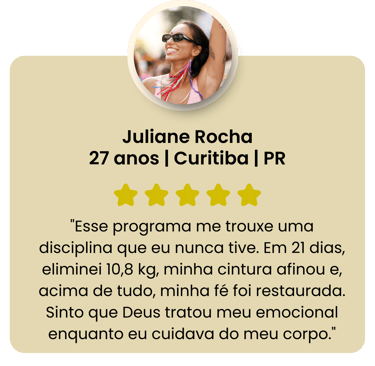 Aproveite esta oportunidade para fortalecer sua fé, acelerar seus resultados e tornar sua jornada de 21 dias ainda mais leve e transformadora.