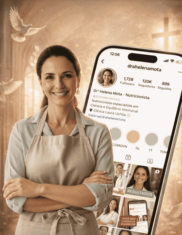 Sou Dra. Helena Mota, cristã devota e serva fiel de Deus. Minha formação é em Nutrição, mas foi na caminhada espiritual que encontrei o verdadeiro caminho da transformação feminina.