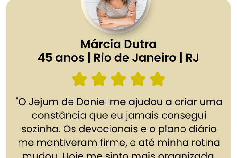 Hoje, esse princípio é adaptado para mulheres que desejam unir fé, equilíbrio emocional e cuidado com o corpo. É um jejum leve, seguro, baseado em alimentos naturais, devocionais diários e propósito, transformando não apenas a aparência,